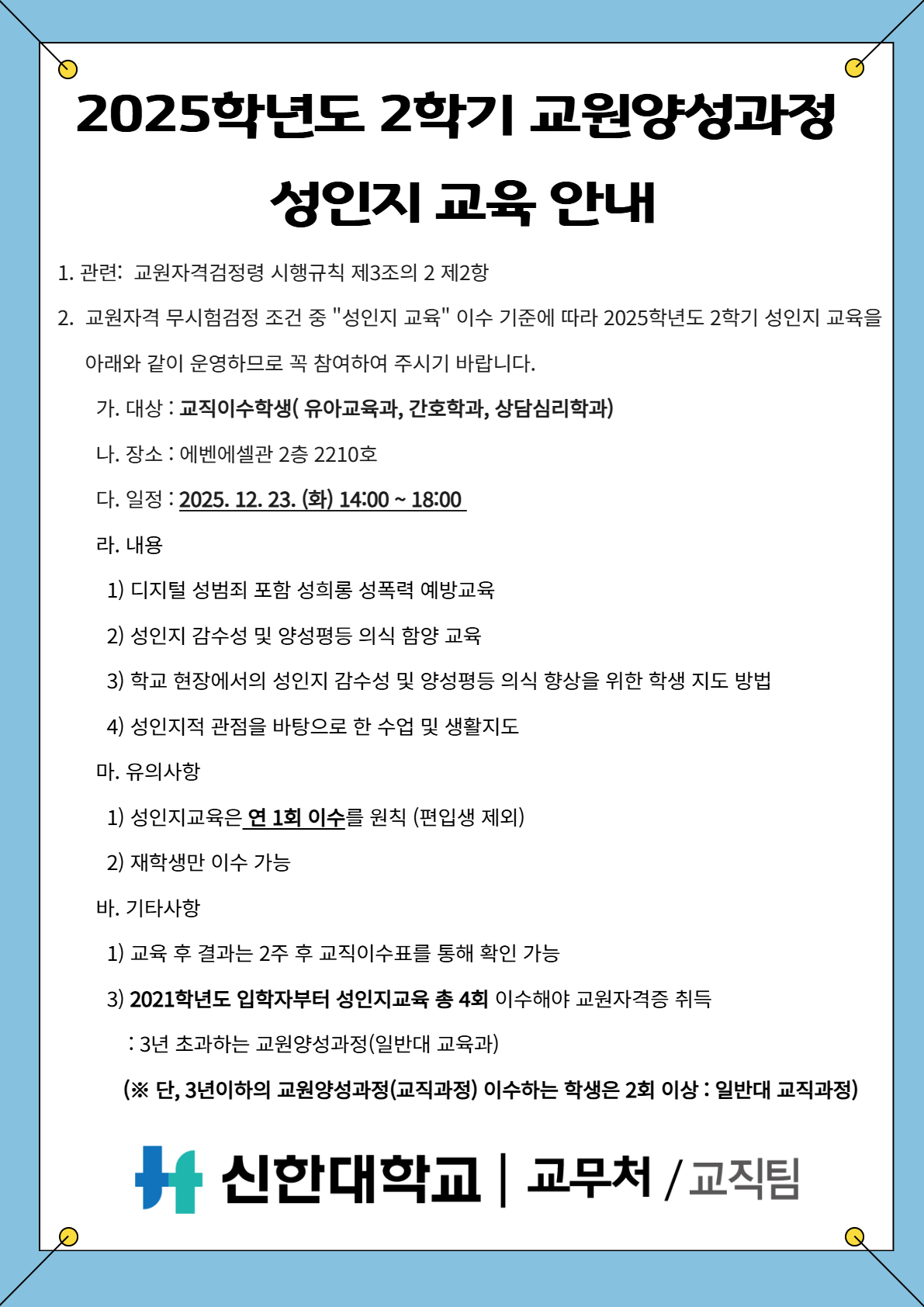 [교직] 2025학년도 2학기 성인지교육 안내
