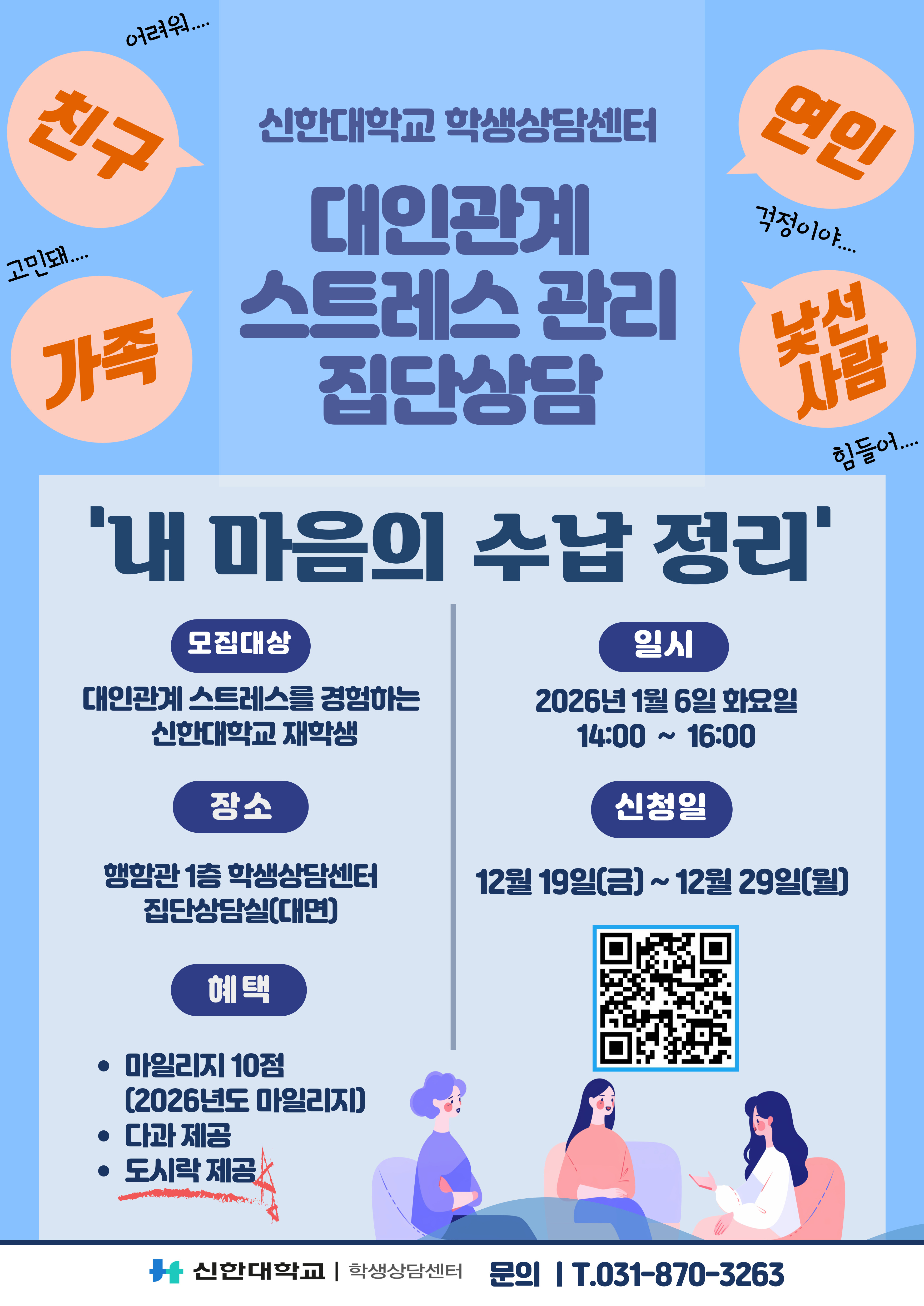 ▶모집대상 : 대인관계 스트레스를 경험하고 있는 재학생 선착순 8명